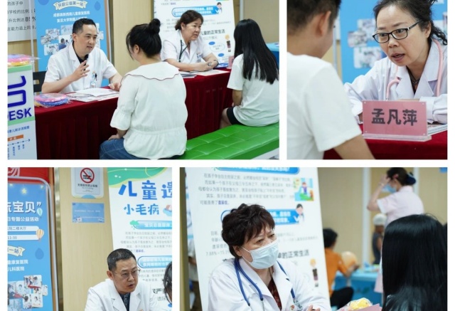 活动当天,西南儿童康复医院二楼大厅内人头攒动。发育行为科全体门诊医生为到场家庭提供免费遗尿症专题义诊服务。医生们通过详细问诊、健康评估及个性化指导,帮助家长科学认识遗尿症的成因,消除对遗尿症的误解与焦虑,并给家长们深入浅出地讲解了小儿遗尿的相关知识。