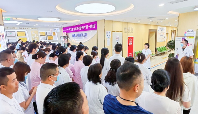 “内、外、夹、弓、大、立、腕……”医院大屏播放的视频中,一位身穿护士服的“白衣天使”正在教大家七步洗手法的口诀,群聊中,一条条“手卫生打卡”的消息也接连跳跃出来,这个五月,西南儿童医院一城两院格外“忙碌”。